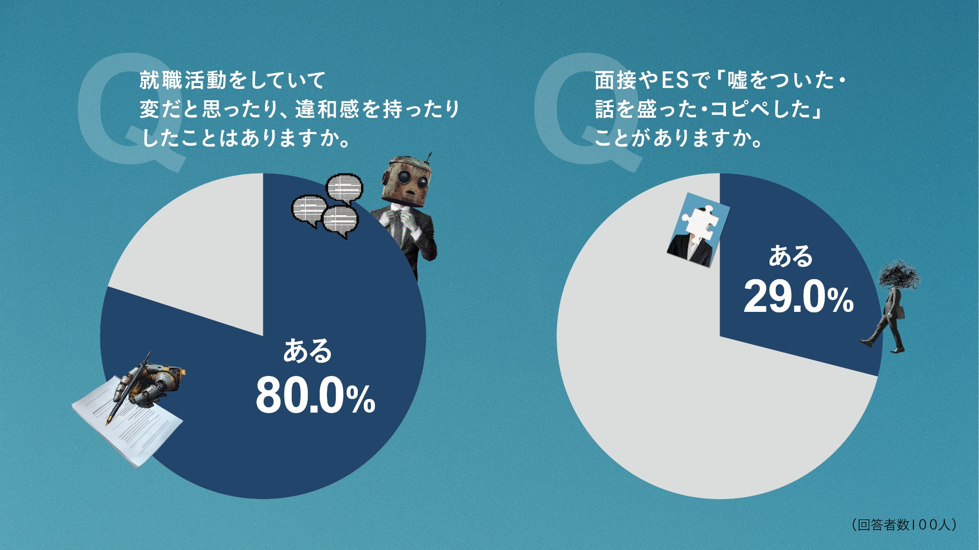 - 80%の学生が今の就活に違和感を感じており、精神的に負担が大きい