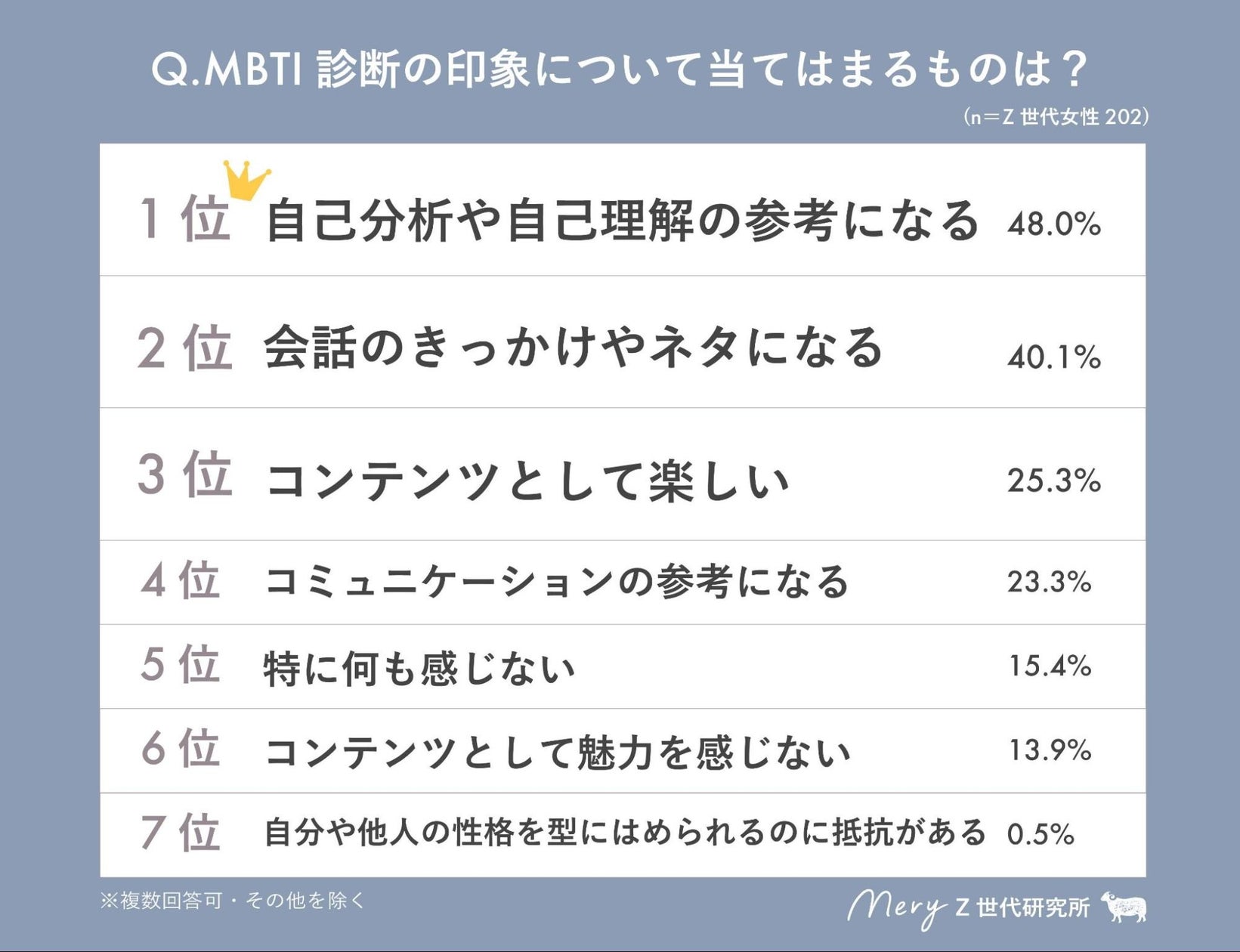 株式会社MERYのプレスリリース(2024年10月17日 11時04分)【MERY Z世代研究所調査】今、流行りのMBTI診断 Z世代の実施率は30・40代の倍以上!周りの人の診断結果を知っている割合も6割超えという結果に
