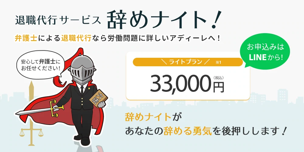 アディーレなら退職代行のご相談が何度でも無料。ご相談はLINEからでもOK。「会社に辞めたいと言えない」「辞める際に揉めたくない」という方を、労働問題に詳しい弁護士がサポート。土日祝日も休まず、朝9時~夜10時までお電話受付中です。